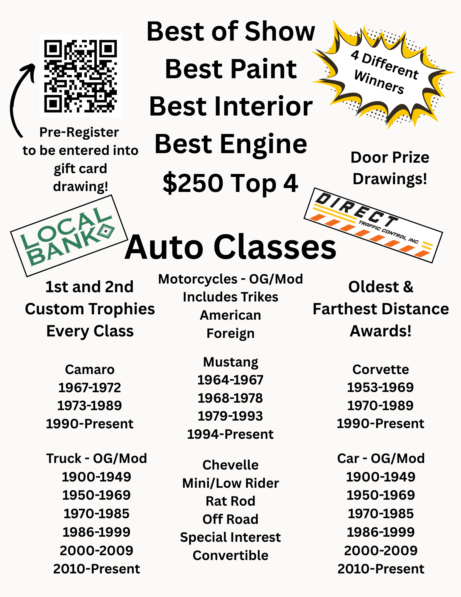 Compete for unique awards like Best of Show, Best Paint, and more, judged by our hired out-of-town judges.